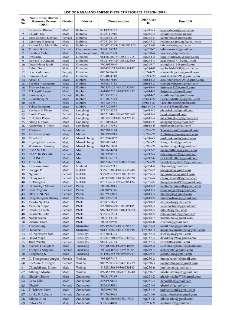 Email Id: pmfme.nagaland@gmail.com